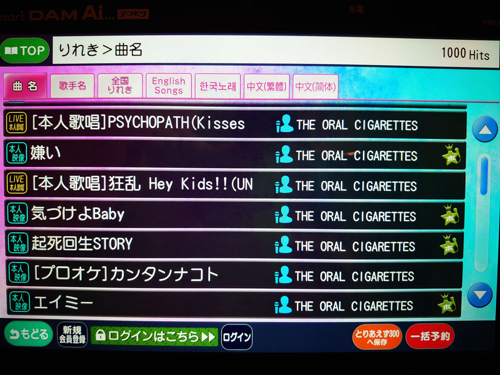 歌った曲リスト