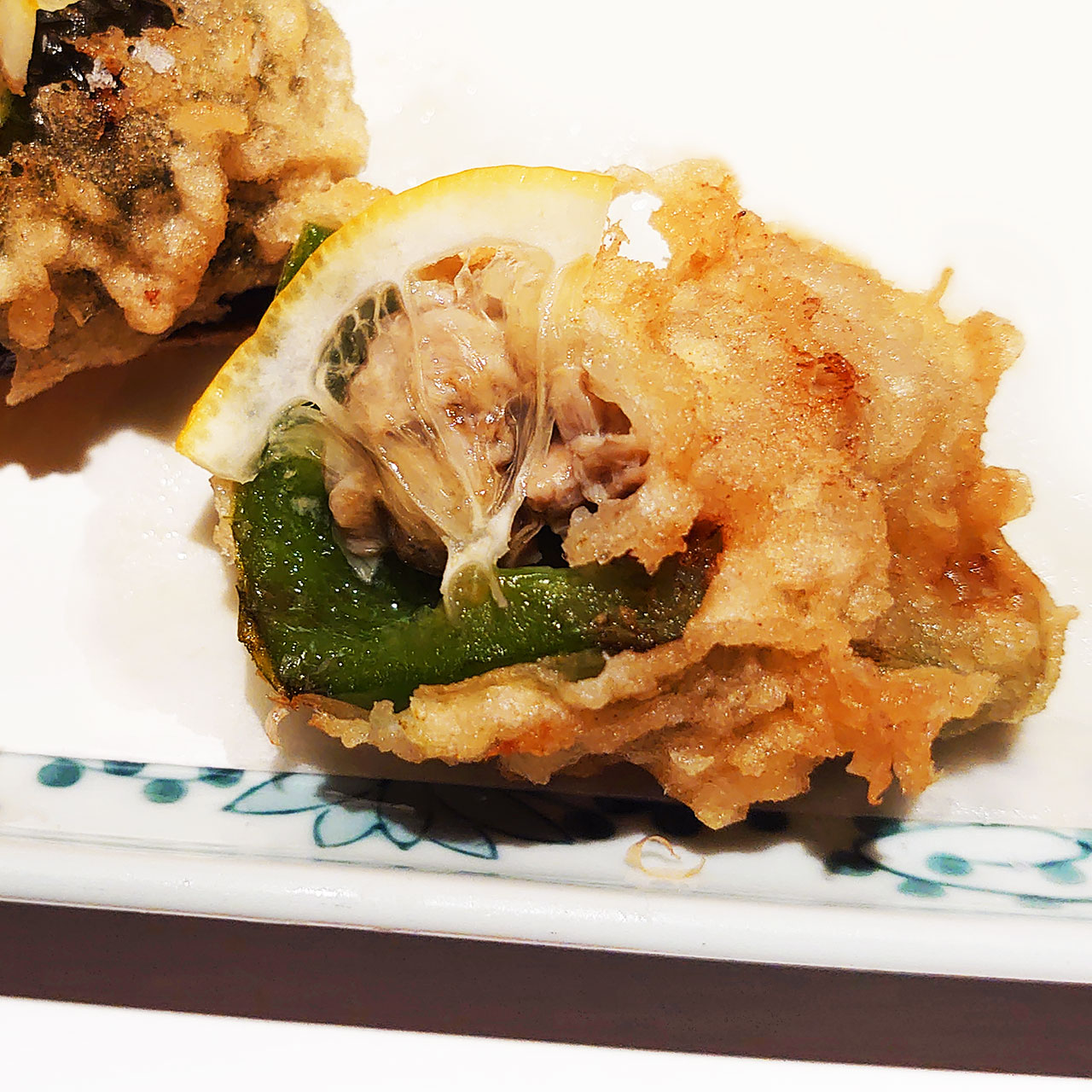 牡蠣をピーマンで包んでレモンのってて美味しかったです。