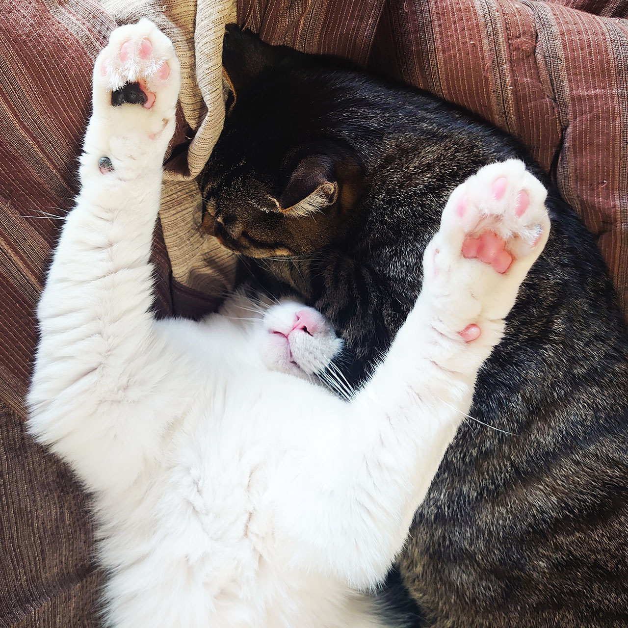 ごん太とヨリは仲良しではないけどお互い特別怖がったりはしないしもちおとごん太は仲良しなので出来れば3匹仲良くして欲しい…と常々思っていたのですが、最近ヨリともちおが軽めですが追いかけっこするようになりました。逃げ回ってたもちおが逆にヨリを追いかけたり。取っ組み合うとかじゃなく軽く追いかけたり追いかけ合ったりしてて特にヨリがとても楽しそうで嬉しいです。