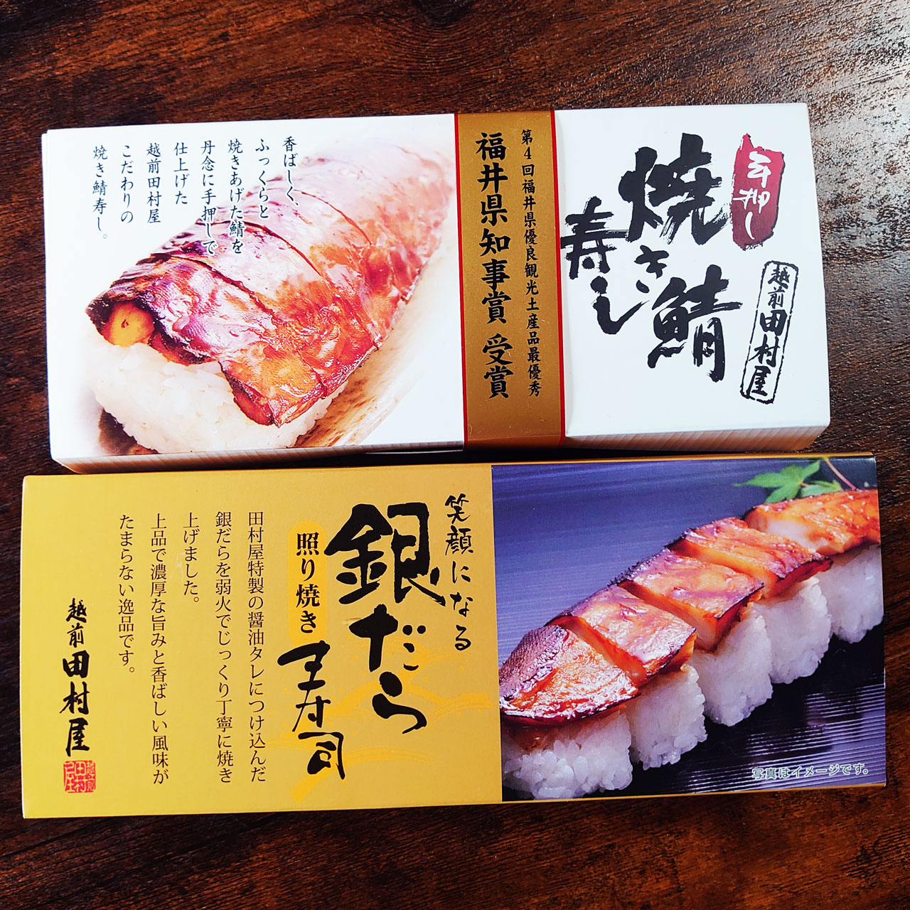 先月金沢駅で母と購入した越前田村屋さんの焼き鯖寿司と銀だら照り焼き寿司おススメです!なぜなら常温で持ち歩けるから!そして消費期限が翌日か翌々日(ものによるからパッケージ裏に記載してあるのを見るのがいいです)までと長めだから!ライブやイベントで金沢行った場合終わった頃には電車の時間やお店自体が閉店したりであんまりお弁当とかじっくり買えないので先に帰ってから食べるお弁当とか買っておきたいところですが金沢駅で多い魚介系は大体保冷コーナーみたいなところに入っているしでまずは持ち歩けそうなのを第一条件にしているのですがそこで出会ったのがこちらなのでした。(通販だと冷蔵便で届くそうなので常温で持ち歩くのが正解かはわからないのですが11月の店頭にはテーブルに平置きだったので)母がおいしそうと3本買って私は実は期待してなかったのですが(いつもの失礼)実際食べるととてもおいしくてまた見つけたら今度は自分で買おうと思いました。焼いたのだけではなくえんがわ寿司も買って貰いこちらだけ買った日に食べました。