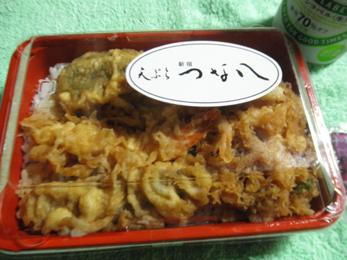 昨日の夕飯は白海老のかき揚げ入りの天丼とごぼうのサラダ♪