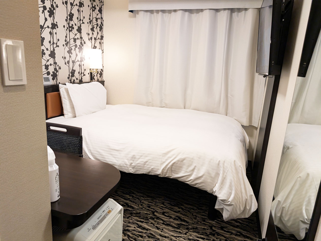↑お部屋はこんな感じでベッドの下にスーツケースが置けるようになっているためかベッドは高め。