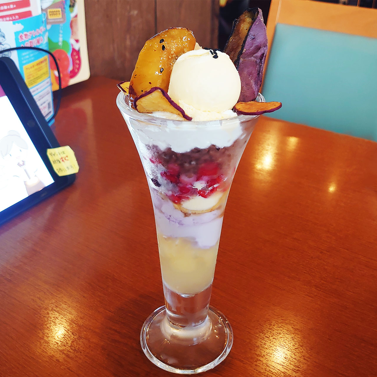 パフェの一番下の方はリンゴのゼリーみたいな感じでそれが個人的にはちょっといまいちだったのでそれがお芋味のアイスとかせめて普通のアイスだったら良かったなぁと思いました。