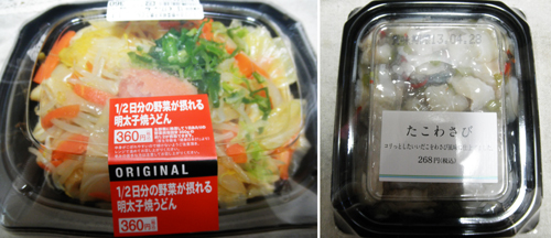 昨日の晩酌のお供はファミマの明太焼うどんとたこわさ。
