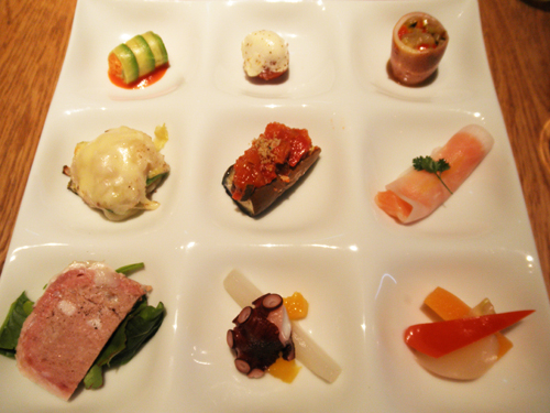 食事も最初に出てきたキャベツのポタージュとかポタージュってキャベツのはいただいたことなかったのですが食感も楽しくておいしかったし、次に出てきた前菜9種の盛り合わせもどれから食べるか迷えて楽しかったし、丸ごとトマトの中にごはんが入ったリゾットとかも見た目だけじゃなく味も素敵でした♪♪
