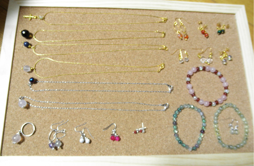 私は天然石のアクセサリー、アクセサリー(リサイクル品)、衣類(未使用)、画的饅頭堂グッズ(アクセサリー、ぽち袋、ポストカード等)を出します!