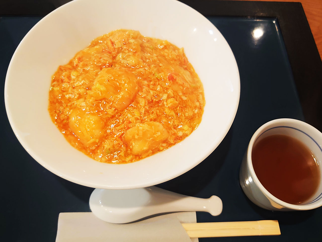 ランチメニューなのかな?大きな写真があったえびカニチリソースがかかったごはん(名前がうろ覚えすぎて)をいただきました。