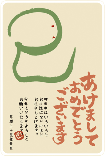 絵と言うより筆ペンで描いたのをスキャンして色変えただけなので個人的には元旦にあげた自分用の年賀状の方が時間かかってるし採用してほしかったんですが・・・