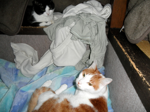 …入ってんのにヨリときたら私がたたんだ包み紙をがむしゃらにかじって散らかしたあげくその上で座ってまったりしていましたω(ΦωΦ)ω