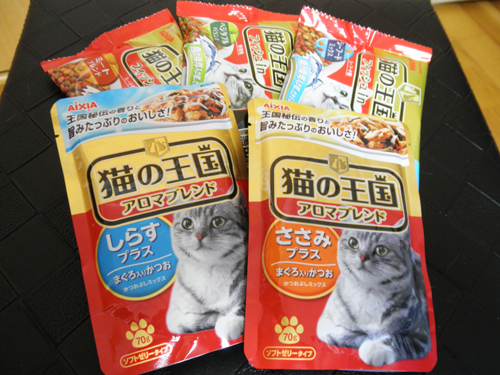 先週だったかな~前に参加した‘極楽ねこカレンダーフォトコンテスト’(6/18参照)の結果ともれなくもらえるキャットフードが届きました♪