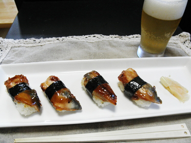 で、画像のうなぎのお寿司(¥298)を買ってきました。