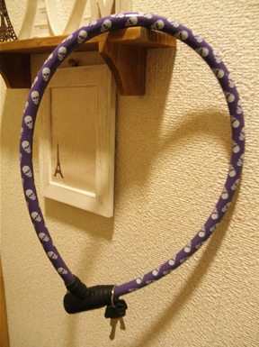 鍵はクローゼットの奥に専門学生時代に自転車持ってないのに紫にスカル柄ってのに一目惚れして買ったワイヤー錠が眠ってたのでそれを引っ張り出して使うことにしました◎