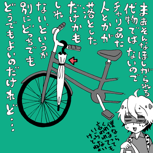 昨日スーパーに自転車停める時ハンドルのとこに傘ひっかけて置いたんです。