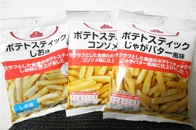 しお味、コンソメ味、じゃがバター味3種類ともおいしい