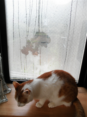↑結露で白く曇った窓の一部がふき取ったような後になってるのはヨリが舐めたからですwww
