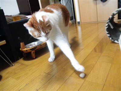 もっさりとれた毛を丸めるといい感じになったのでヨリの前で転がしたらまんまと夢中になって遊んでくれましたヽ(´ω`)ノ
