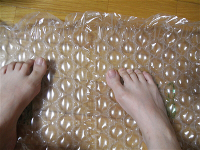 潰れない大きなプチプチのやつだったんですが何気なく乗ってみると足裏の気持ちいいことヽ(=´ω`=)ノ