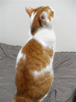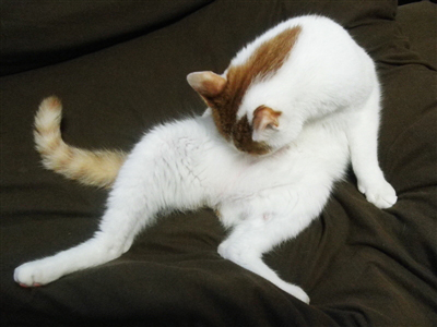 ベッドのいつもの場所で毛繕いしてるとこにダイブして思いっきりこねくり回してから仕事へ出かけました~www