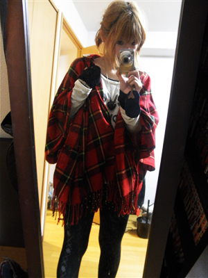 一昨日出かけた時に先月のラフォーレのセール(1/23参照)で買ったポンチョ初めて着てみました(*´∀`*)シ