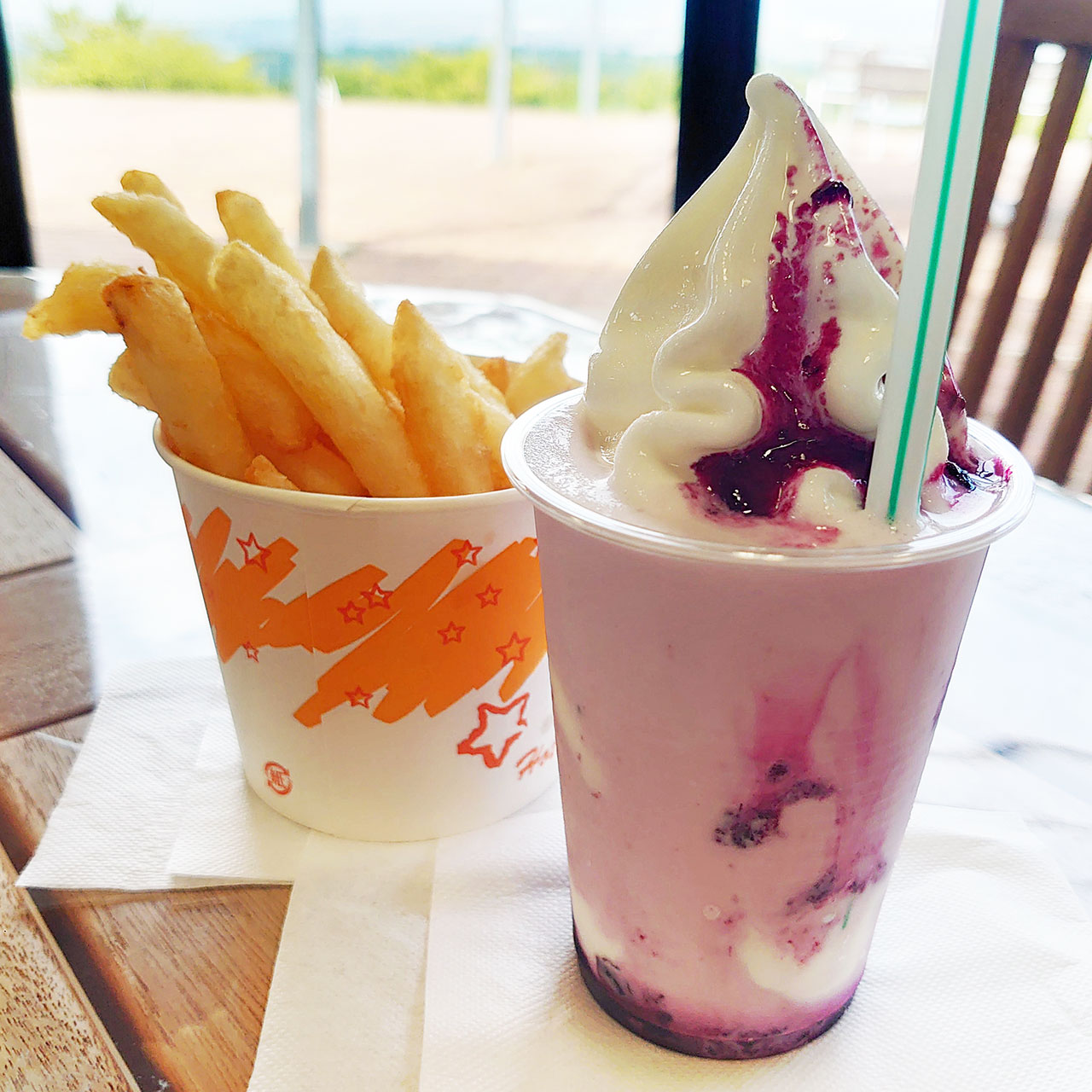 ついでにフライドポテトと飲むヨ―ソフトをいただいてきました。