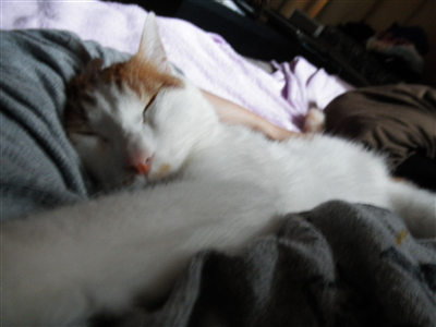 昨日腕の中ですよすよ寝ていたヨリが急にバッと起きてバッとベッドの下に降りて私まで目が覚めました(=ヮ=*)