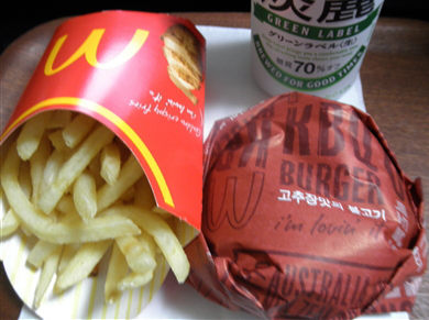 その後2日分のおつまみ買って、マックで今150円になってるポテトLサイズとKBQバーガーを買って帰ってきました。