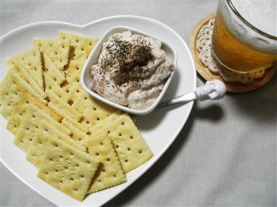 画像のようにクラッカーにつけても十分おいしいのですがトースターでカリッとキツネ色に焼いたパンの耳や薄めに切ったバケットなんかにつけて食べるとさらにおいしいです(ω´∀`ω)