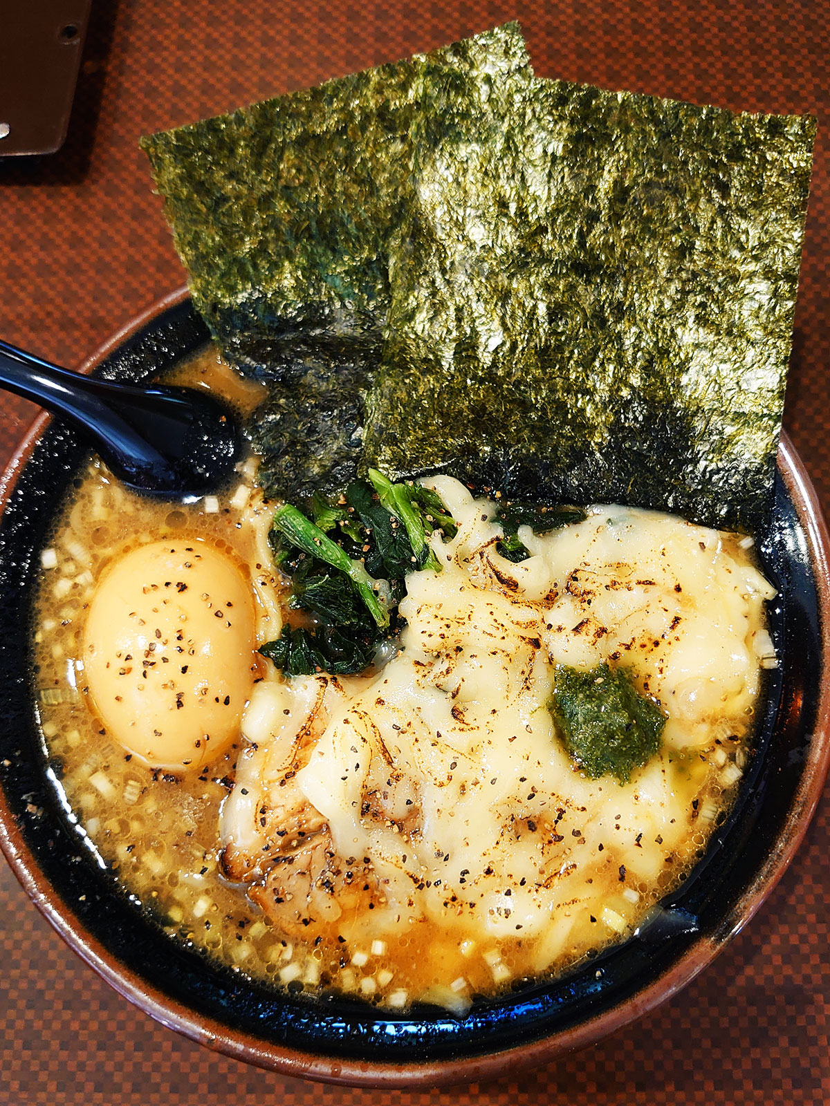 彼女のおすすめのチーズジェノベーゼのトッピングに欲望のまま煮たまごもつけました。