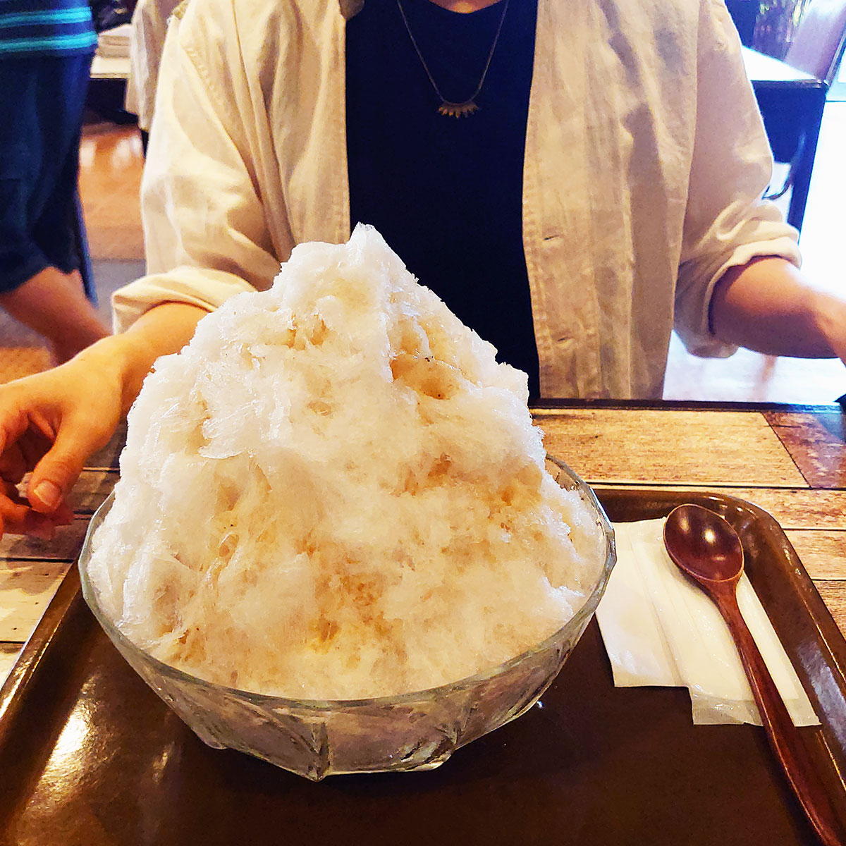 幼馴染の方が思い切って頼んだ大きなかき氷(バナナミルク)!
