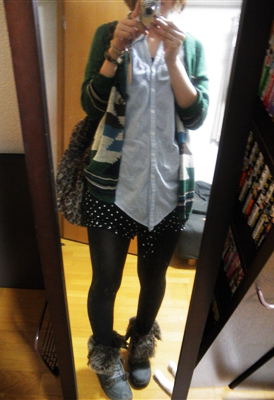 この緑のカーデ、夏に実家に帰った時に富山市内で母と買い物に行ったときに買ってもらったものなのですが、涼しくなってきてやっと出番が回ってきました(ω´∀`ω)