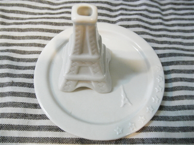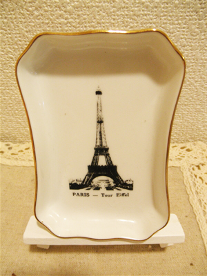 手のひらサイズのエッフェル塔がワンポイントになったプレートと小さなフラワーベースはNATURAL KITCHENで各105円♪♪