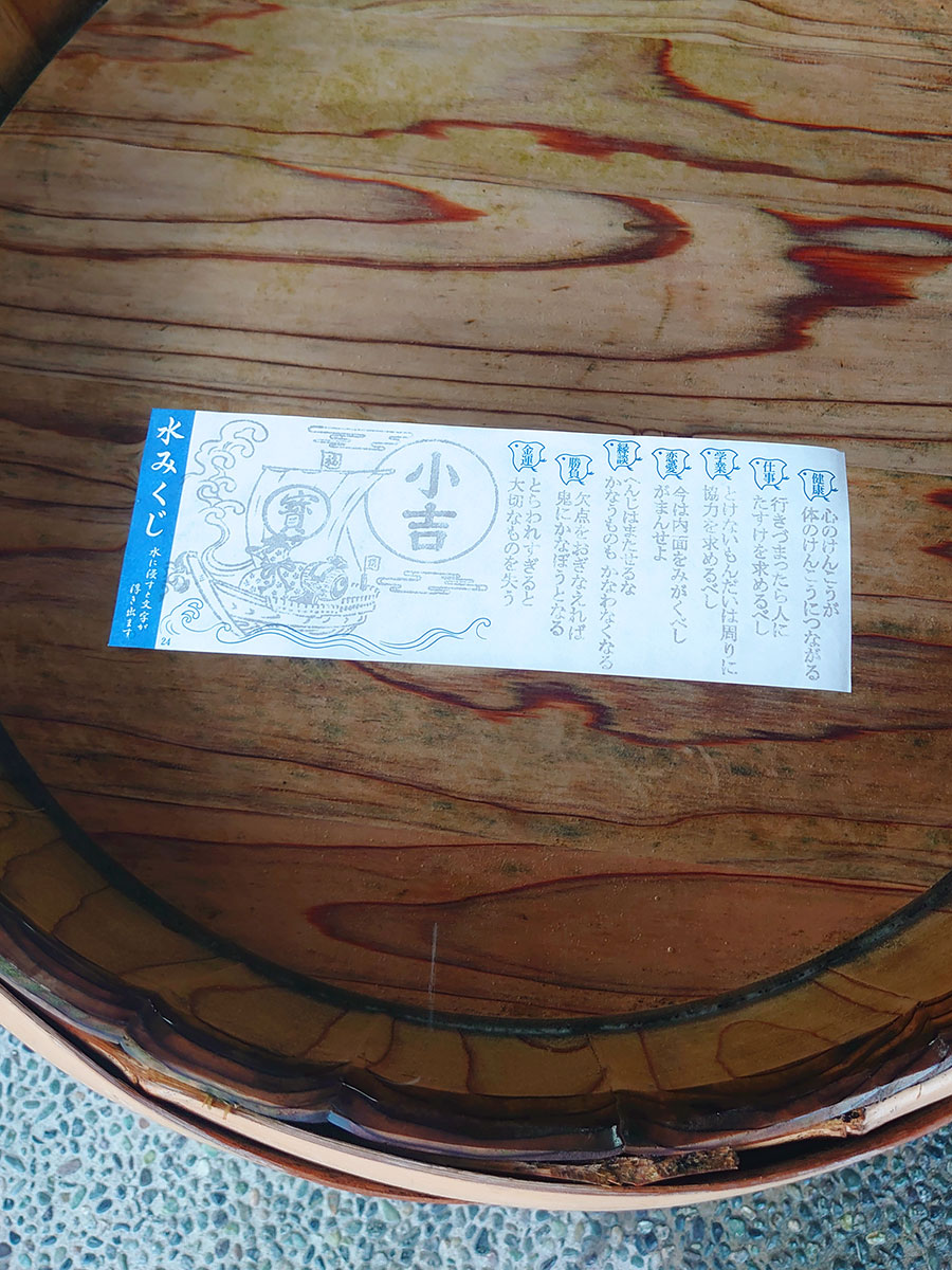 水みくじという真っ白なおみくじを水につけると文字が浮き出るおみくじも涼やかで素敵でした。