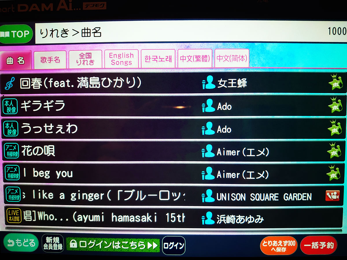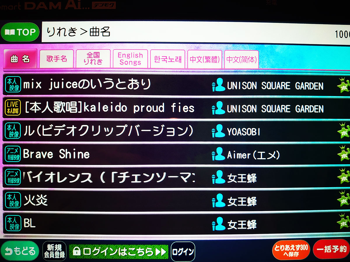 少し前なので何歌ったかうろ怯えなので少しだけ残ってた履歴画像だけ載せていきます。