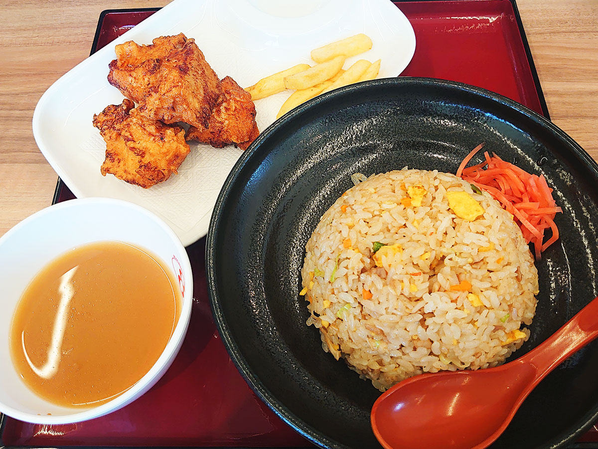 注文したのは炒飯(スープ付き)と鶏の唐揚げ