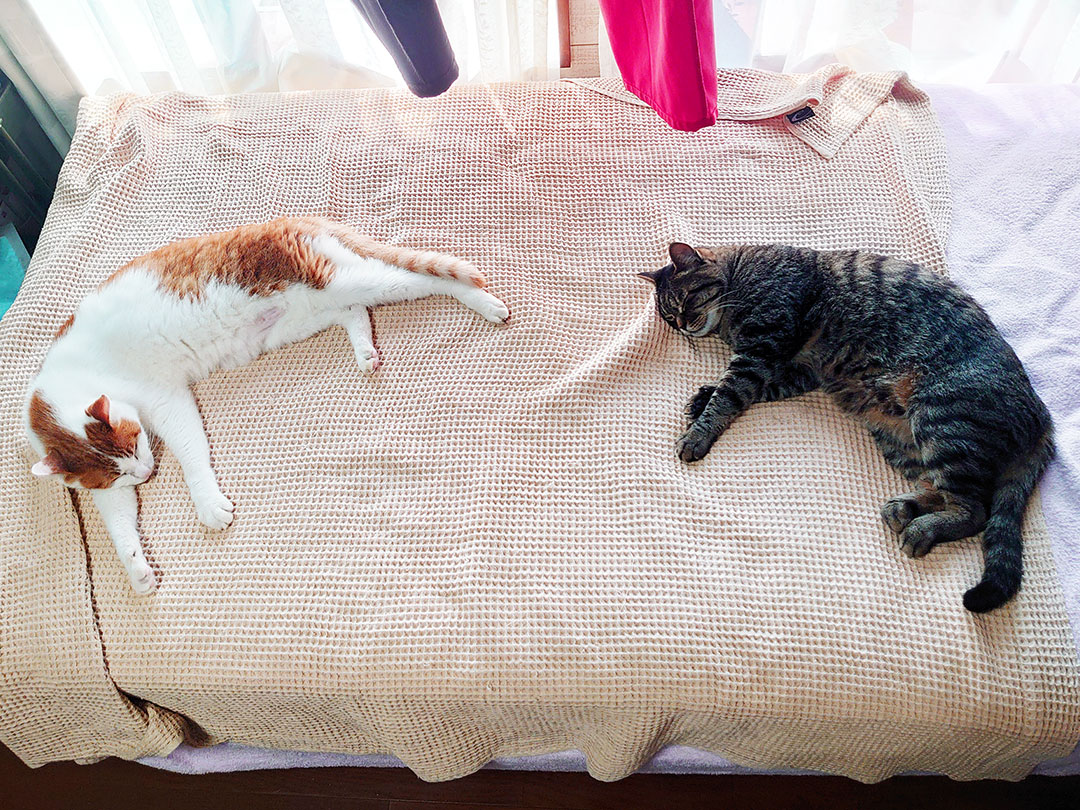↑私の部屋にいる時だけこの距離でもいまだに寝る2匹です。