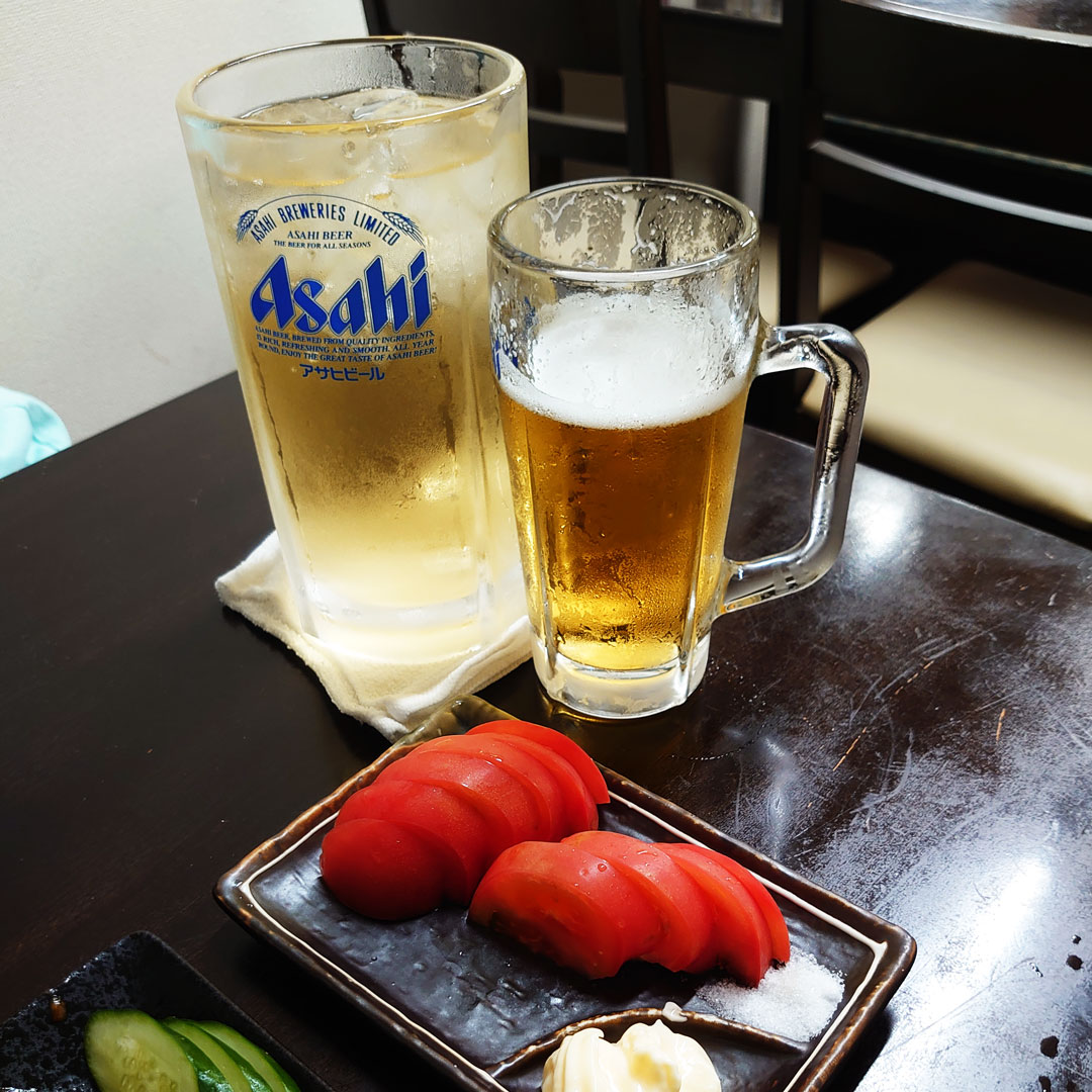 楽しすぎたのとわっちが頼んだ特大ジョッキのハイボールが羨ましくて結局中ジョッキ2杯のあと特大ジョッキでビールを頼んでしまい…