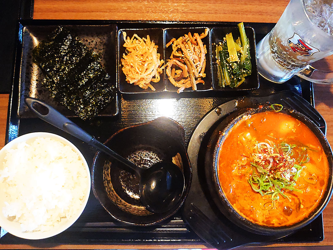 スンドゥブチゲはピリ辛ですが最近あんまり辛い物は好んで食べない私でもおいしくいただけるれべるのピリ辛さでした。