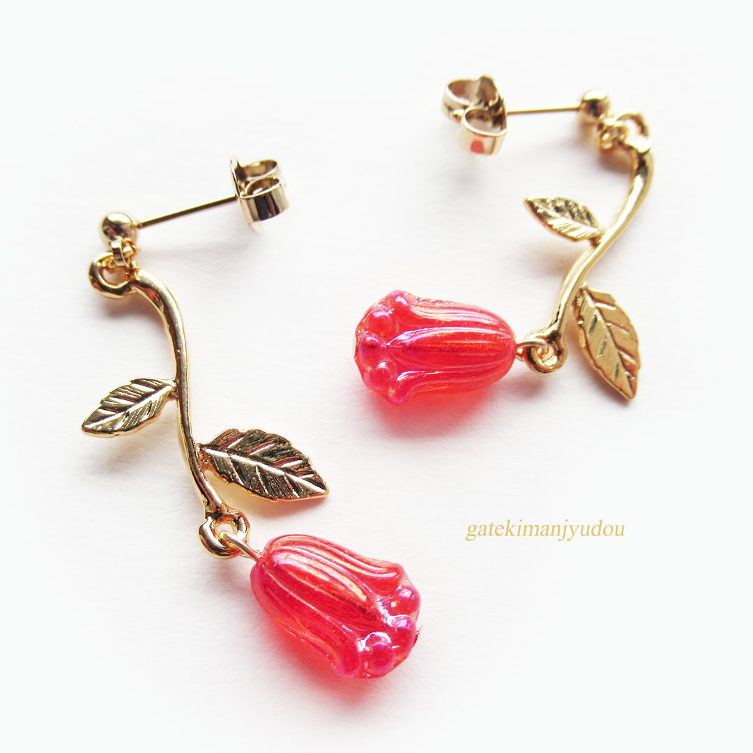 チューリップ型のチェコビーズが可愛いなぁ欲しいなぁとずっと思っていました。
