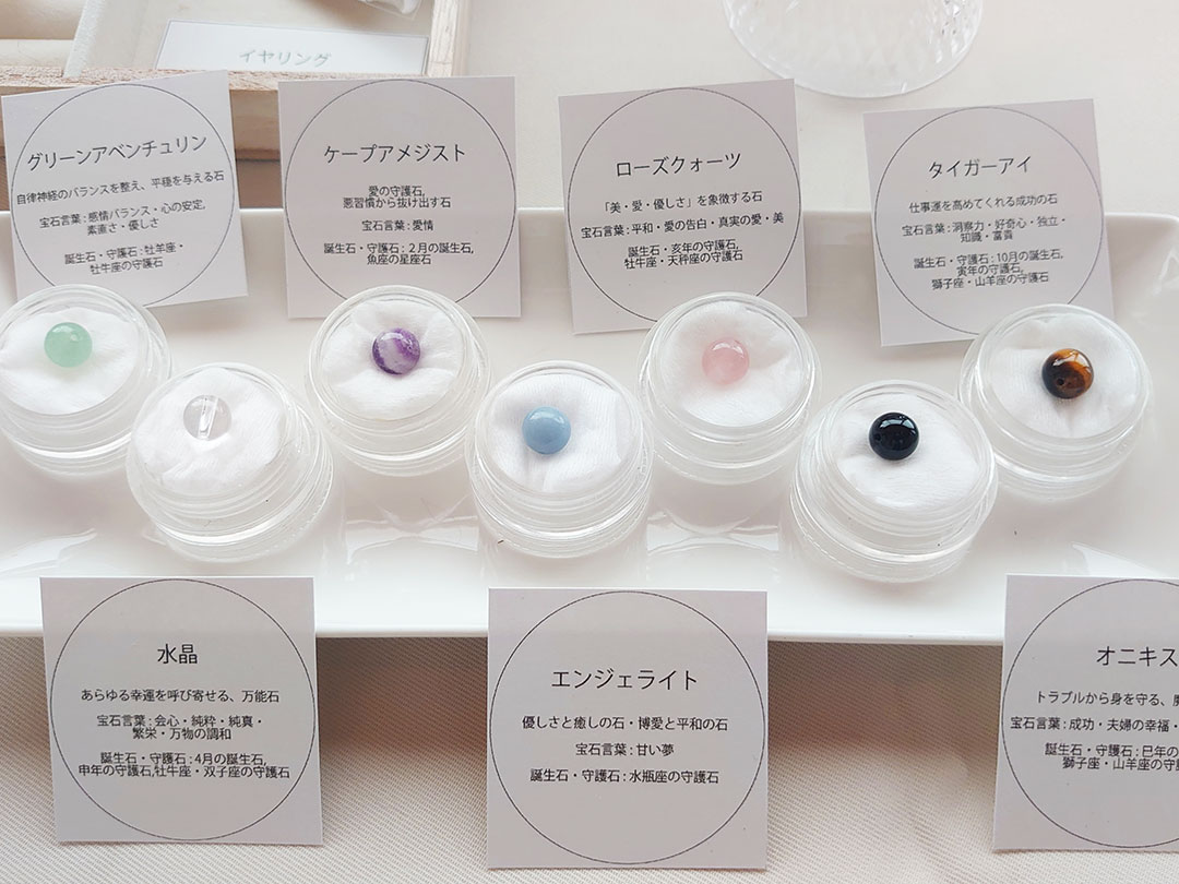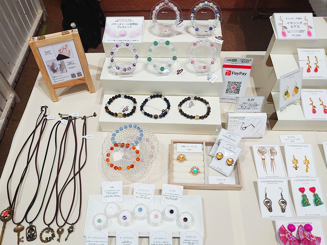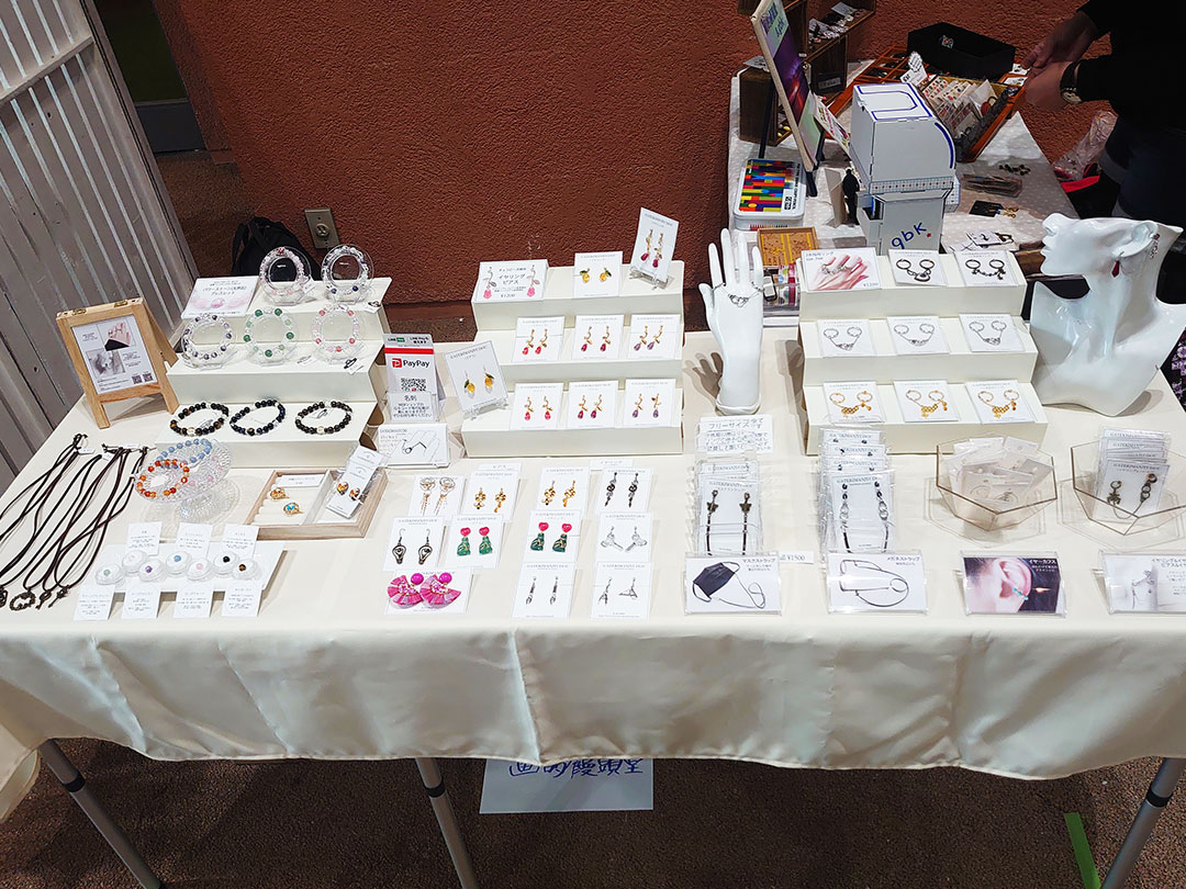 今回は最近のジェンダーレスなアクセサリー展開とちがって春っぽいアクセサリーを中心に作ったりディスプレイも低めにしたりしました。