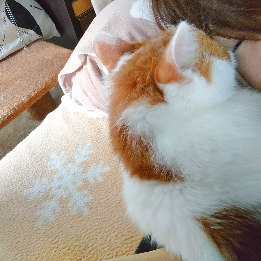 私の顔の方からお腹の方までにょろんと伸びて寝てくれてるのでかなりあたたかいです。