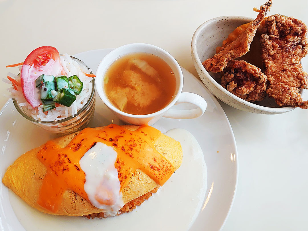 オムライスが人気だそうでから揚げとセットになった「おすすめセット」を注文しました。