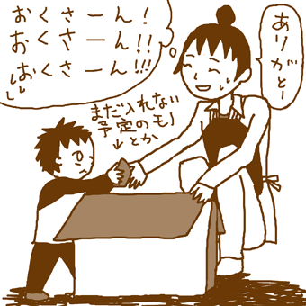 奥さんと子供が家の中にはいたのですがその子供、男の子なんですが・・とにかく珍しいのか何なのかまとわりついてきたり手伝おうとしたり(もちろんかえって邪魔なワケで)おおはしゃぎ!