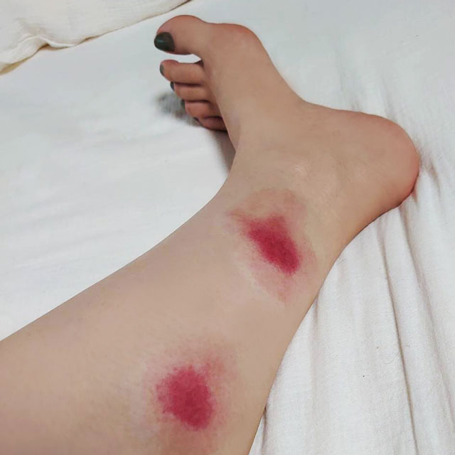 ム〇とか定番の虫刺されの薬では効かないことは知っていたのでステロイド系の軟膏を塗りましたが翌日には画像の通り腫れて広がってました。