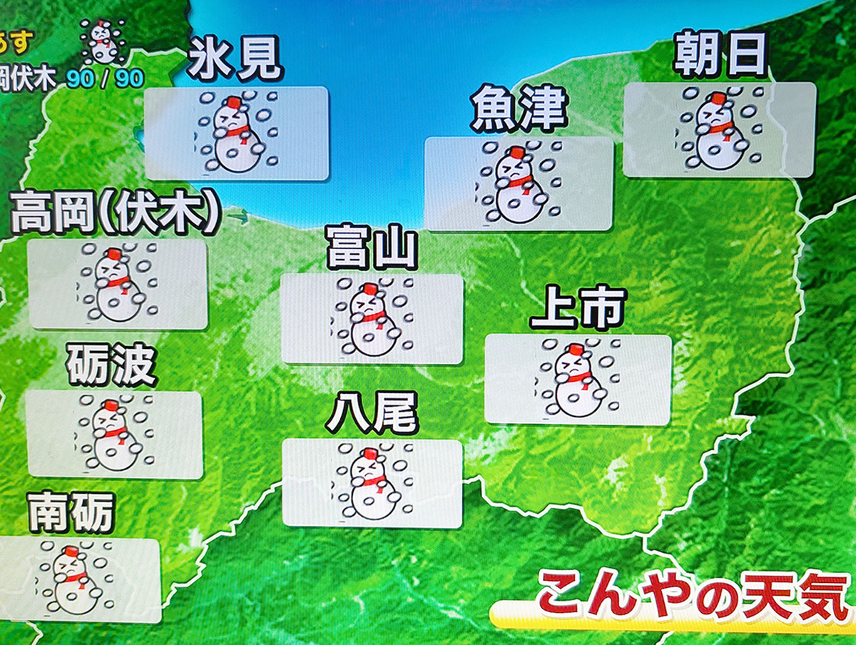 ↑昨日の夕方くらいの天気予報雪だるまさん吹き飛んできそう…