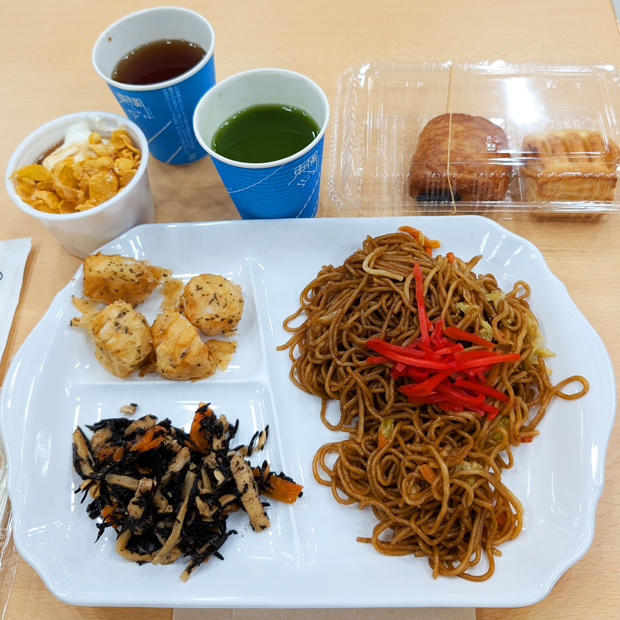 朝食は土曜は焼きそばとかで日曜はカレーでした。