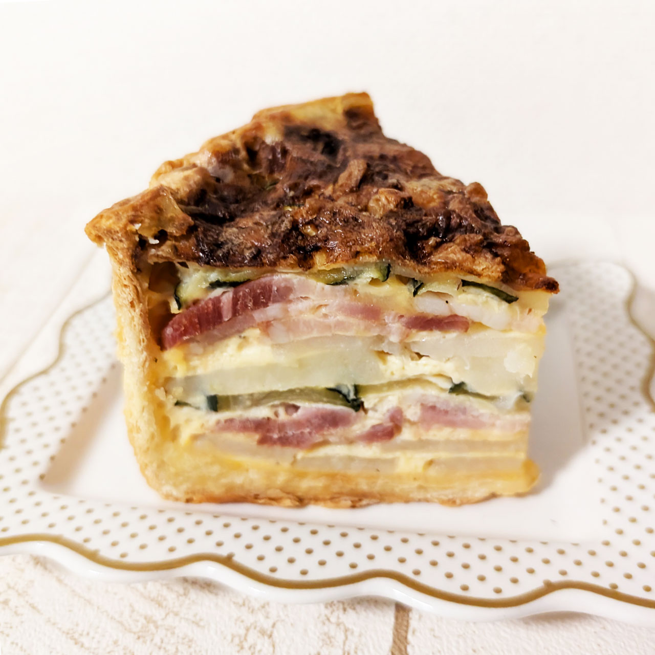 ズッキーニもじゃがいもも大好きだし卵の感じよりパイ感が強い感じで食べ応えがありました。