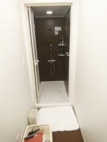 シャワーは画像のようにシャワーブースと脱衣所が繋がっていて脱衣所にもちゃんと扉があって内側から鍵がかけられます。