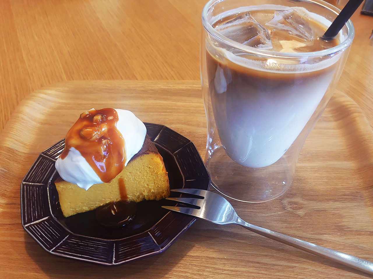 飲み物はケーキに合わせて甘くないものをということでアイスカフェラテ。