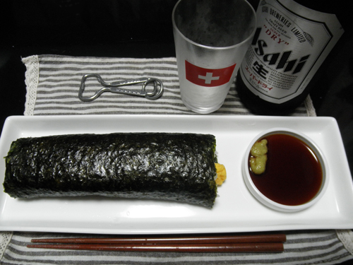 久しぶりのビールと太巻き2本おいしくいただきましたヽ(=´ω`=)ノ