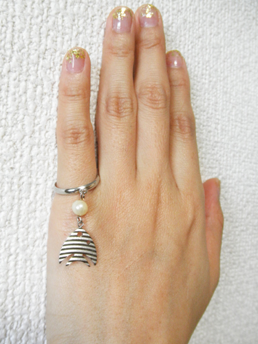 母からもらった不用品の中に片方だけのお魚のイヤリングがあったので手持ちのパーツと組み合わせて指輪にリメイクしてみました◎
